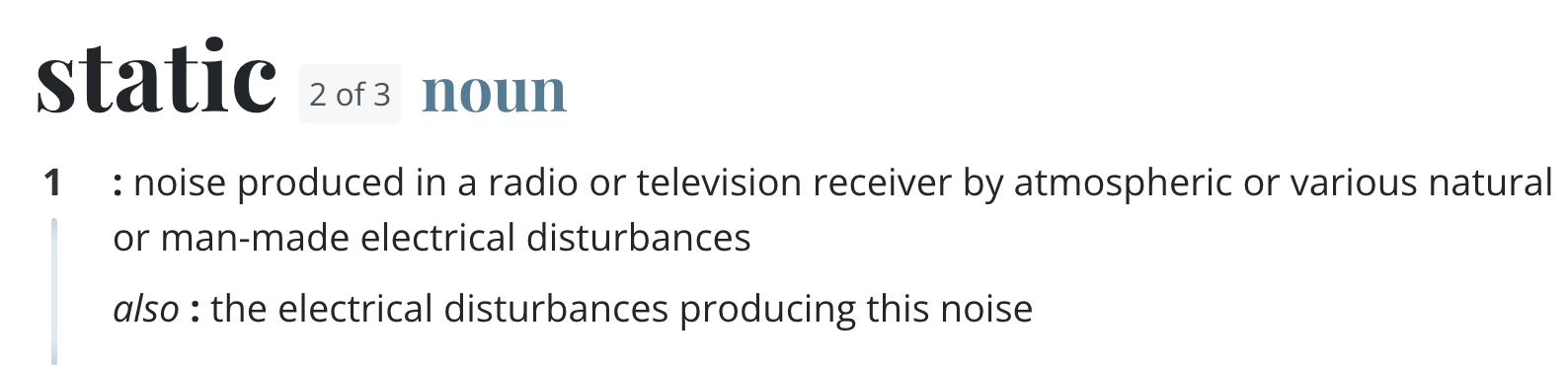 Static as an adjective is “of or relating to bodies at rest or forces in equilibrium.” Could it be our defense for static as an interference is the idea of static as “at rest?”