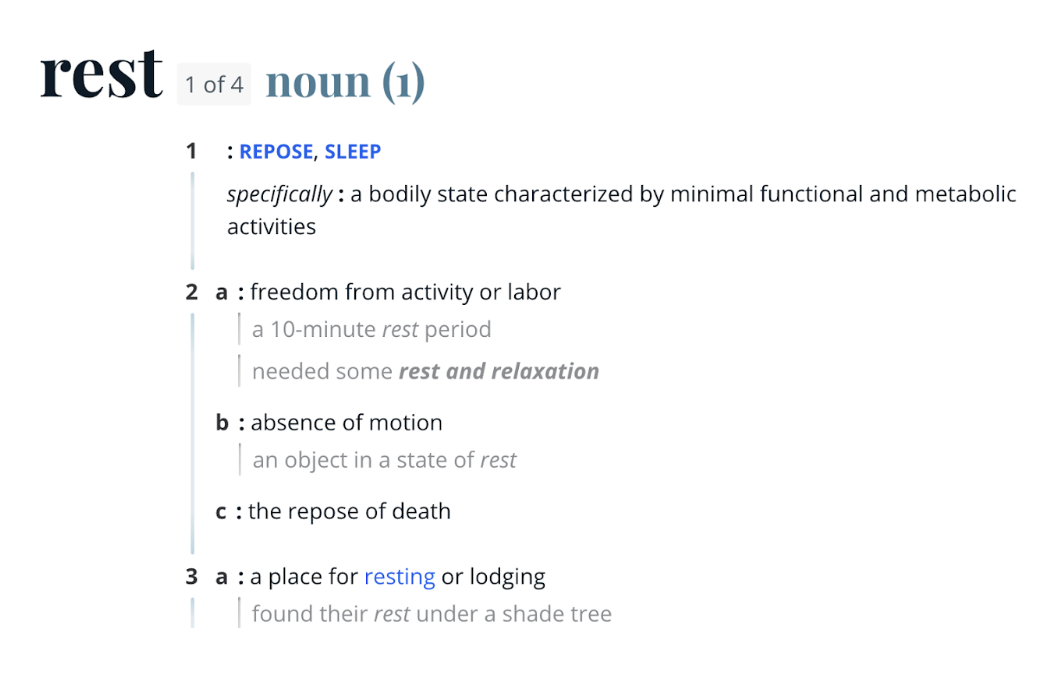 Consider these definitions of rest. (Screenshots straight from Webster’s dictionary).